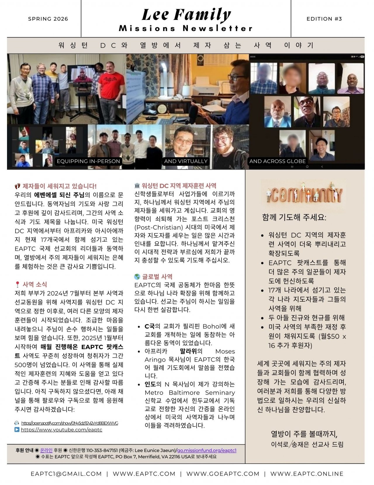 여러분과 저희의 헌신과 순종을 통해 주님은 이 시간에도 열방 가운데서 일하고 계십니다.