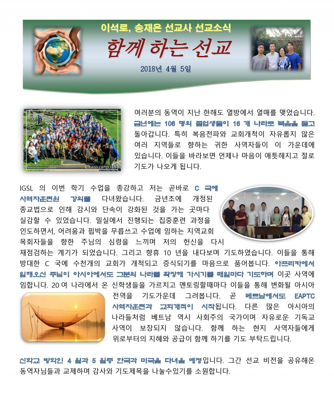 4월 선교소식입니다.